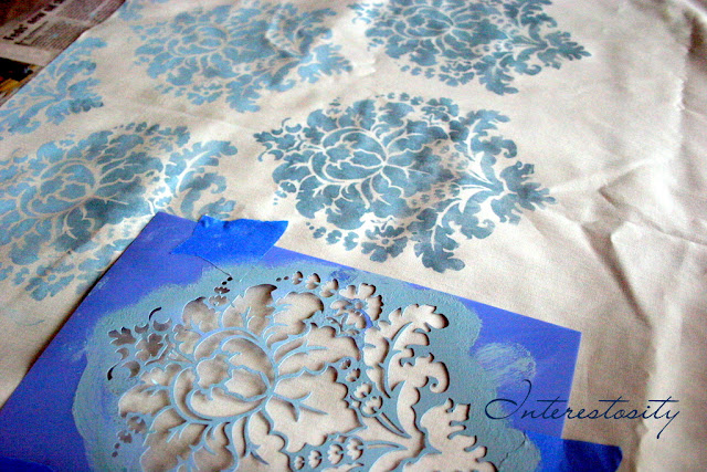 And in another example of DIY genius, Interestosity decided to stencil her own damask fabric pattern, and it turned out fabulous!